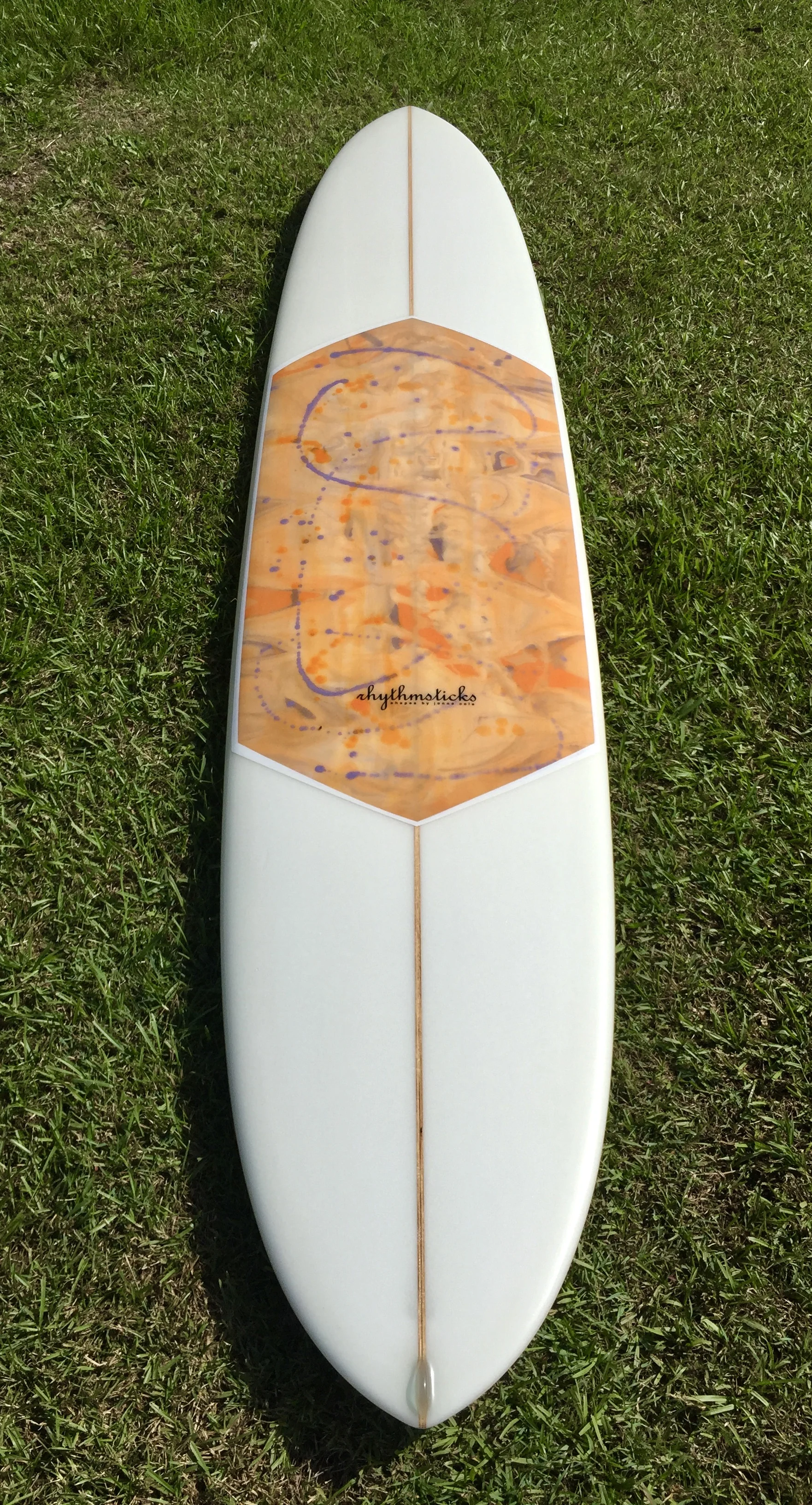 The long pig is a classic 60s pig shape with some of the fat trimmed off. Modeled off the original sixties pigs that would allow a smooth timeless style…. Trimming, crossing over, noseriding and drop knee carves were at the forefront of surfing then as they are now. The Long pig has a rolled belly bottom, full, upturned rails, and a piggy, wide point back outline. The hips and wide point are designed to drag in the wave face when noseriding, and be turned from the tail. Order with a 'D' fin for the purist, or a Greenough fin for a slightly more versatile ride.